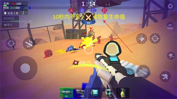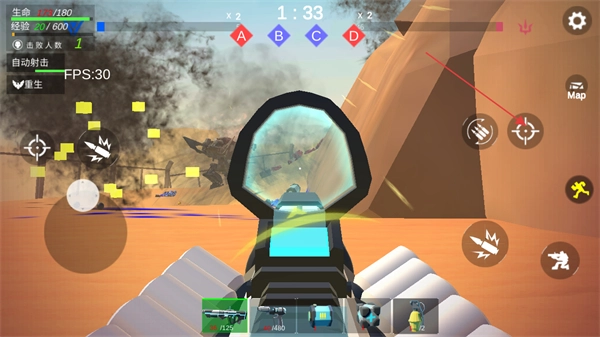 点击左侧和右侧各有的瞄准按钮,即可开启枪械瞄准镜来射击远程目标。