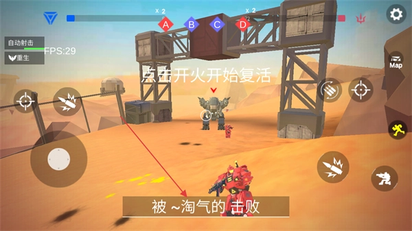 当被敌方玩家击败后,屏幕下方会显示出击败你的玩家的名字,此时点击开火键就能复活,然后回去报仇。