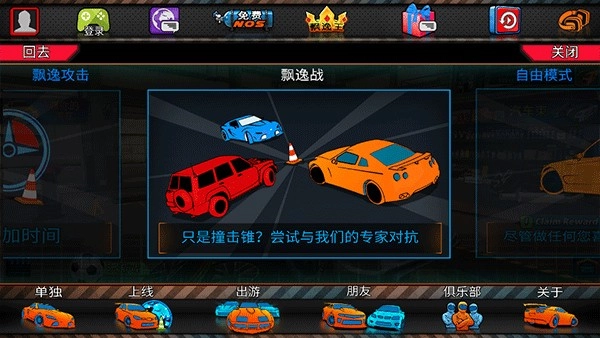 可以通过互联网向朋友发起挑战,在线体验充满刺激的竞技乐趣。这里有永不停歇的在线赛事,无需等待其他玩家加入即可开启。赛场内最多能容纳4辆车同场竞技。