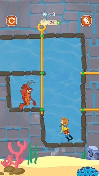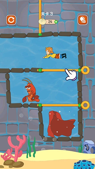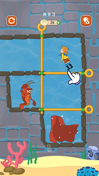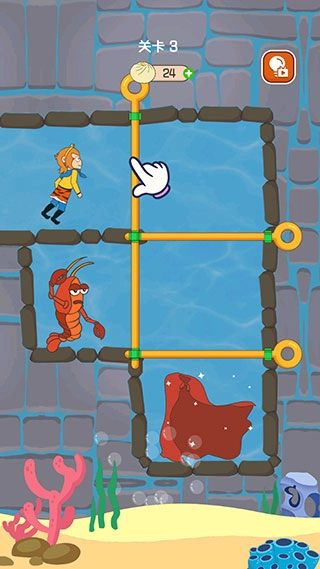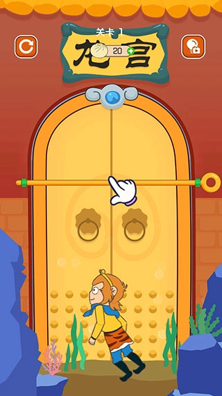 在第三关中,当你拉开竖向的拉杆后,龙虾与孙悟空便会一同开始移动。