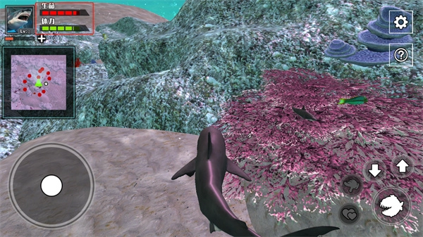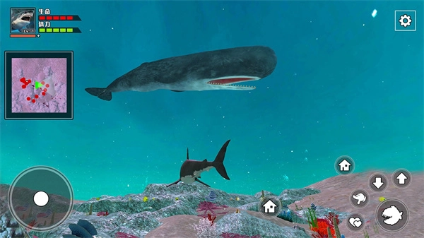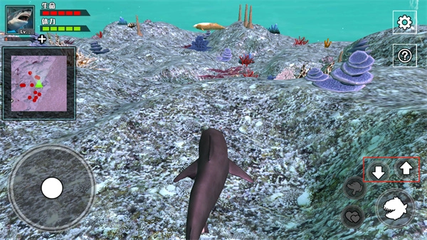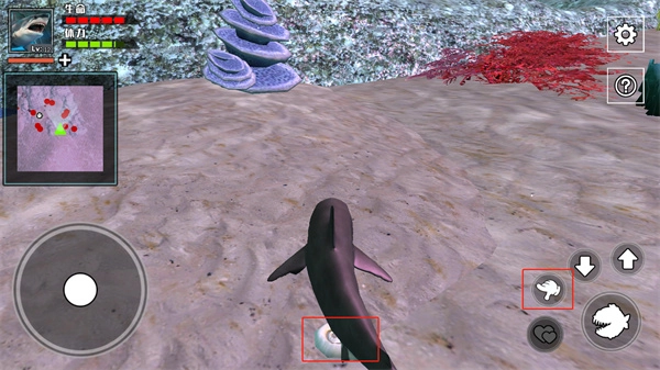 每成功捕食一条鱼都能积累经验值,当鲨鱼等级提升至10级时,玩家还可借助两个爱心按钮来实现生育操作。