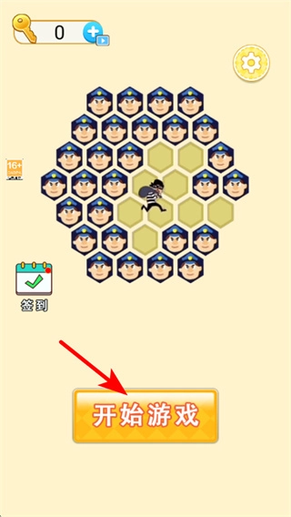 在游戏启动界面,点击开始游戏按钮进入抓小偷关卡,这是开启围捕玩法的基础步骤,体验布局警察核心内容。