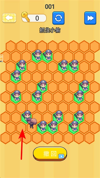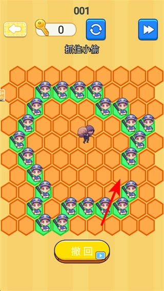 要是布局有了差错,你可以点击撤回按钮来取消上一步放置警察的操作,再重新调整位置,保证包围圈能成功把小偷困住。