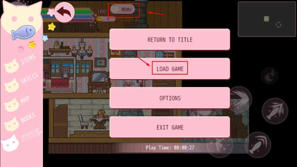 进入游戏后,先点击上方的MENU按钮,接着在左侧找到SYSTEM选项并点击,最后选择LOAD GAME即可。