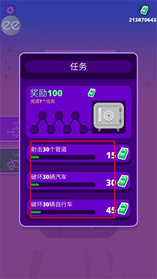 在主界面点击任务按钮,完成这些任务后,可获得相应的奖励,用于解锁或购买道具。