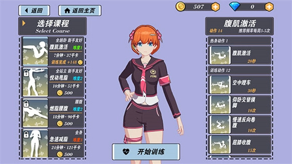 游戏里的健身教练全是二次元美少女,而且每位都有着独特的个性与专属故事。