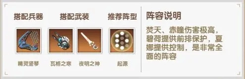 阵容解析:焚天与赤瞳具备极强的输出能力,碧荷可在前排承担保护职责,夏娜则能提供稳定控制,这套阵容的配置十分全面。