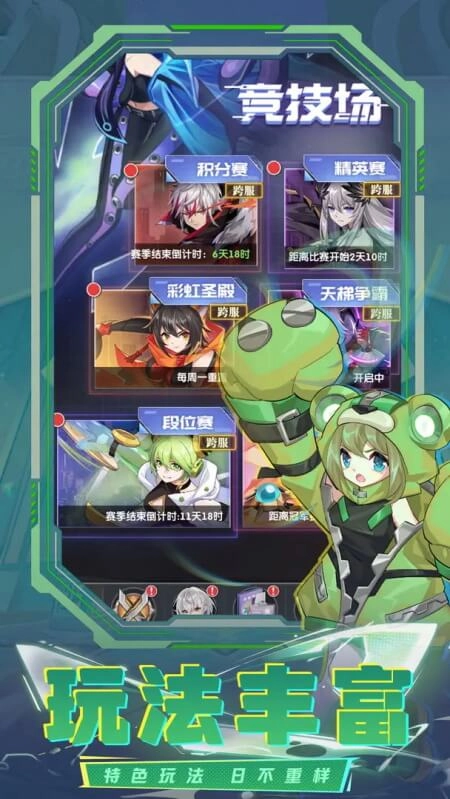 玩家能够在竞技场内和其他玩家展开在线挑战,共同角逐游戏排名,游戏会依据玩家的排名发放限定奖励。此外,玩家可以通过挂机获取资源,并且玩家等级越高,挂机产出的资源就越多,进而能够加快成长速度。