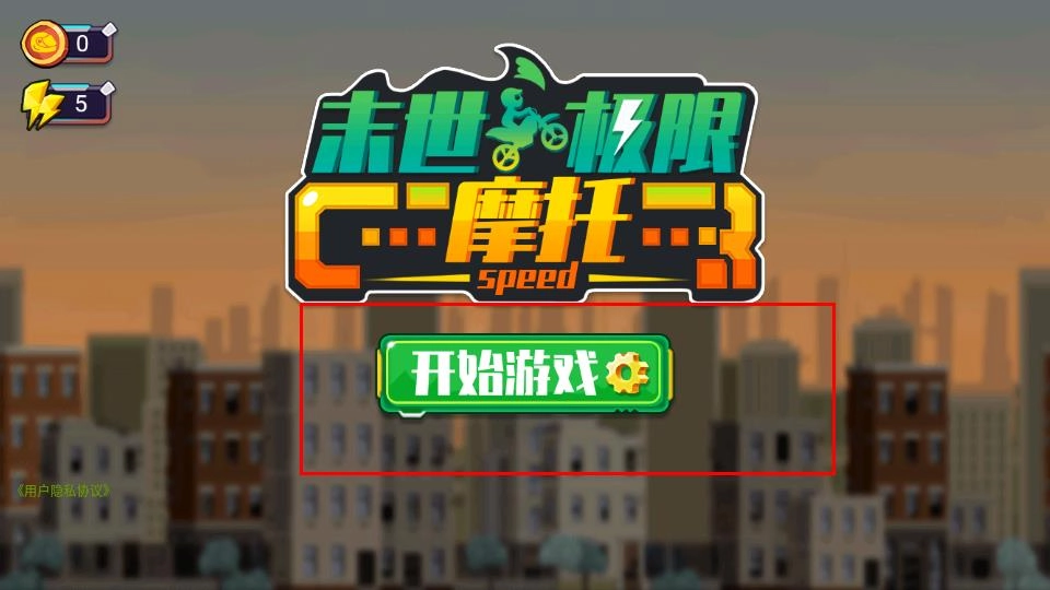 完成后进入游戏界面,点击绿色的开始游戏按钮,就能正式开启末世摩托的挑战之旅了。