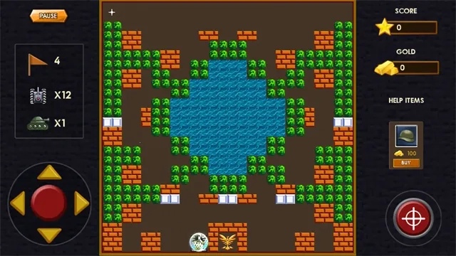玩法很简单,用虚拟摇杆操控移动方向,点击射击键就能发射炮弹,只要守护好金色鹰徽、把敌方坦克全部清剿干净就能顺利通关啦。