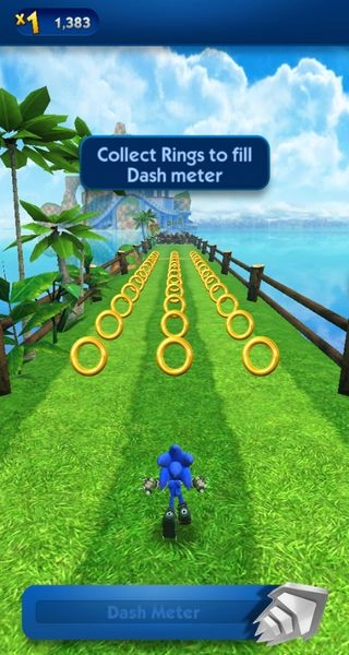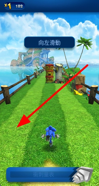 当遇到岔路或障碍物时,向左滑动屏幕,索尼克就会向左移动,从而避开阻碍,继续在跑道上奔跑,并收集沿途的道具。