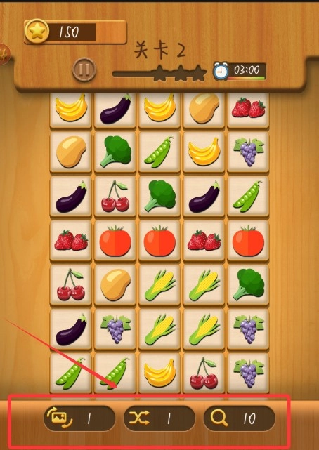 2、点击相同的两种水果进行链接。