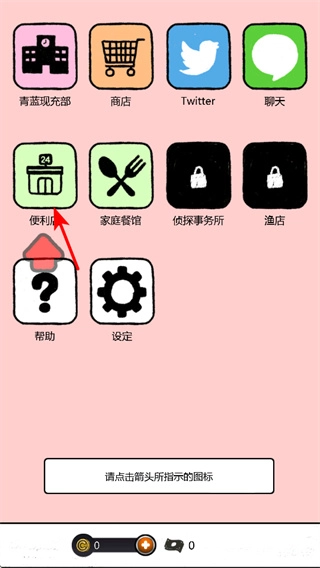 在功能选择界面,点击便利图标是进入便利店场景开启经营、解锁游戏功能的关键步骤,只有点击该图标才能进入对应的场景。