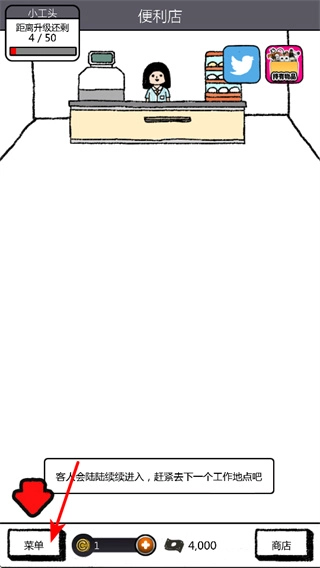 在便利店完成操作后,点击左下角的菜单按钮,就能查看游戏功能、任务或者切换场景,只有精准点击才能规划好后续的游戏进程。