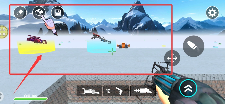 当进入冬季地图场景后,玩家可以通过滑动操作控制角色移动到指定的武器拾取地点。