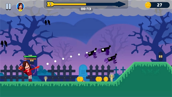 进入关卡后,通过滑动屏幕来发射攻击,以此击败怪物。当消灭当前场景中的所有怪物后,即可前往下一个场景。