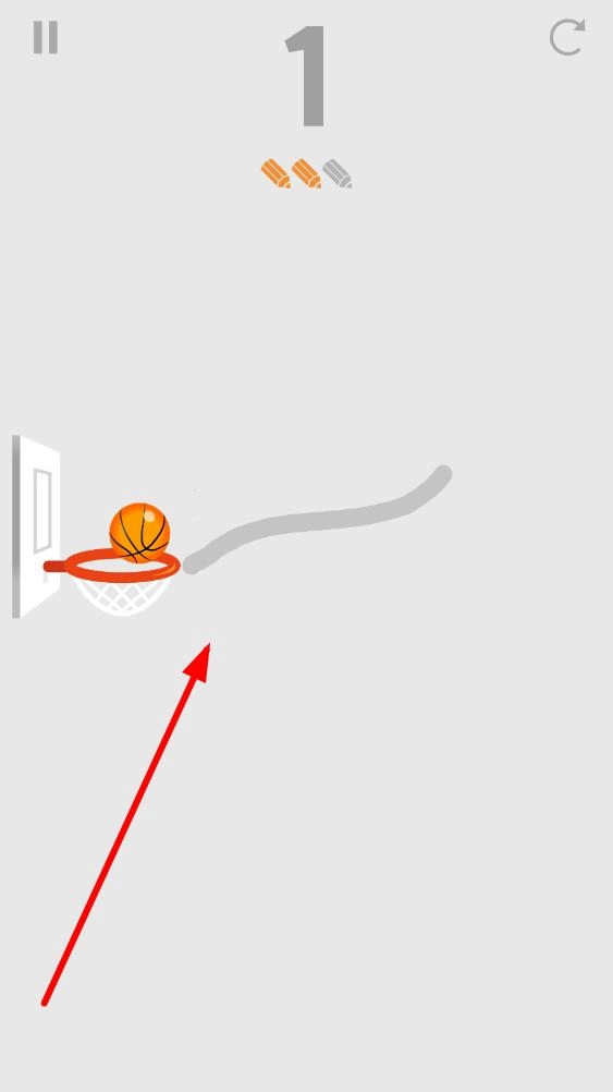 进入游戏后先选择初始关卡,留意小人所在位置以及篮筐的分布情况,接着用手指在屏幕上绘制一条具有弹性的线条,试着把小人送到第一个篮筐里,以此熟悉画线的角度和弹性反馈这些基础操作。
