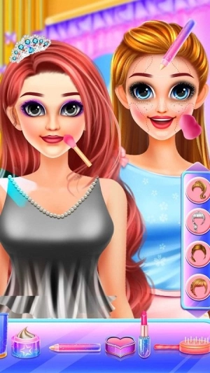 玩家首先要给闺蜜角色化面部妆容,粉底、眼影、口红这类化妆品都能自由挑选,以此打造出富有个性的妆容效果。
