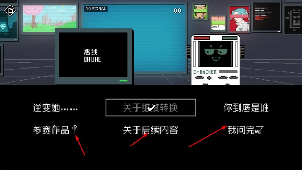 进入对话界面后,你可以选择参赛作品、关于后续内容等选项,以此来推动剧情的发展或者获取与游戏相关的信息。