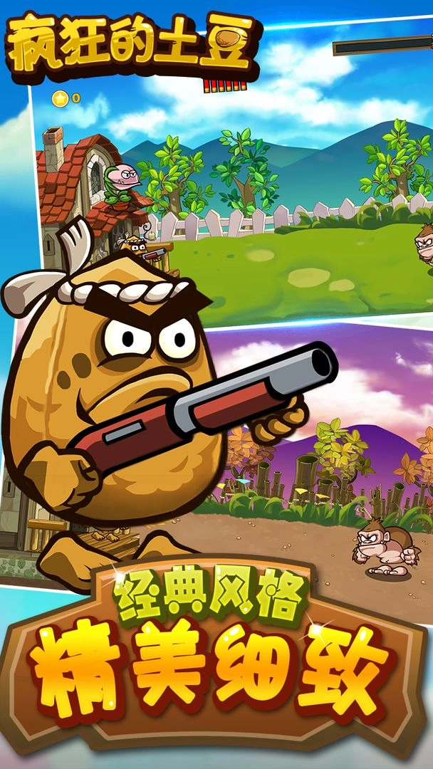 疯狂的土豆有着类似植物大战僵尸的衍生玩法,玩家在游戏里要操控各类植物去消灭不同场景中出现的猴子。游戏开局时玩家只有一颗土豆,对抗猴子完全依靠点击屏幕,利用手中的武器对猴子发起攻击。随着关卡逐步推进,玩家就能解锁更多强大的植物角色了。