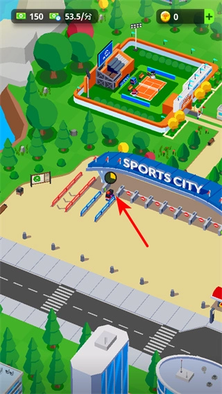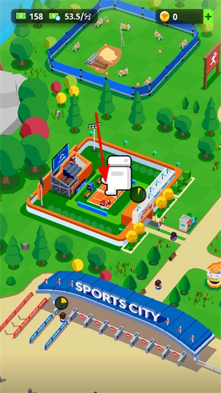 在网球馆这类运动场地里,点击对应的建筑就能开展建设或升级工作,持续完善场地设施可以吸引更多游客,进而提高体育城的整体收益。