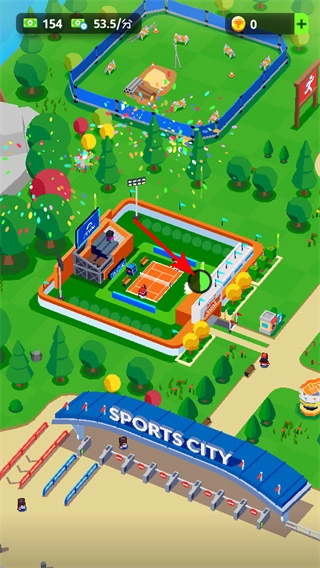玩家能够完全自主地规划并建设体育城市,利用赚取的资金(或是借助钞票只增不减的机制)来投资新的建筑,为城市增添各种各样的体育运动项目,打造出一座超大型的体育赛事城市。
