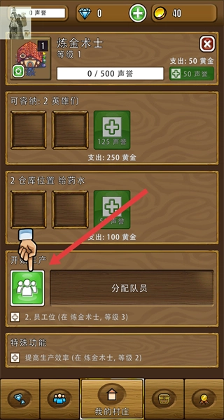 在“我的村庄”界面里,点击场景中的空地,就能启动建筑搭建流程,进而完成炼金术士等建筑的建造。