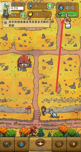 在村庄主界面找到“寻找英雄”按钮并点击,让独角兽外出搜寻英雄,这样就能得到可以挑选的英雄角色了。