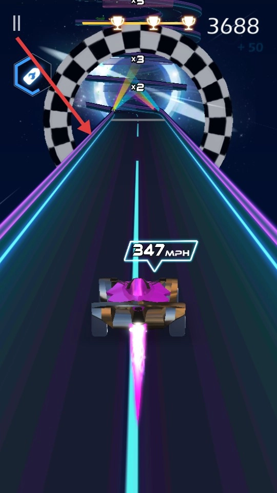 驾驶赛车时,收集赛道上的蓝色晶体,保持100MPH及以上速度前进。