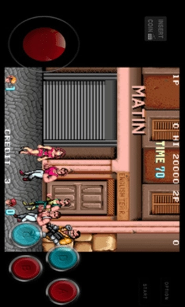 基础移动与攻击:进入游戏后,点击左上角投币口模拟投币,再点击右上角 “start” 即可开始游戏。左侧圆形按键控制角色移动方向,通过上下左右滑动实现走位。右侧设有攻击键,点击可出拳,连续点击能形成连招。