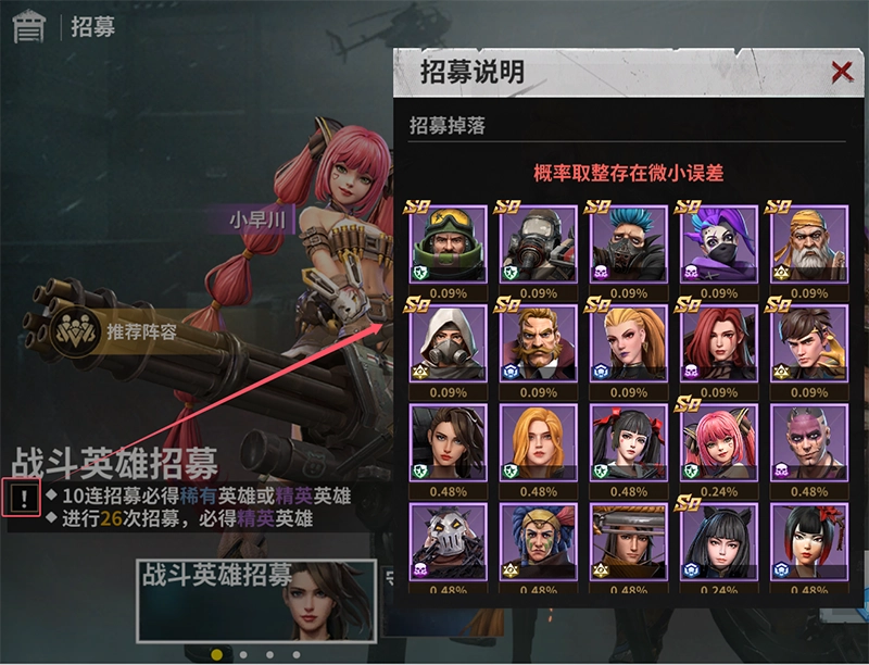 点击【招募】按钮能够随机获取英雄。若招募到已拥有的英雄,该英雄将自动转化为同名海报,此海报可用于英雄的进阶培养。