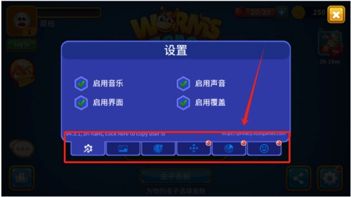 从左往右依次为设置、背景、食物、控制、雷达以及表情符号。