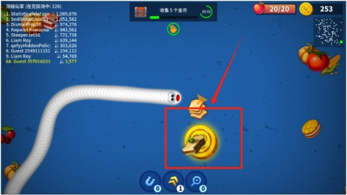 想要取得胜利得消耗五个金币去撞击,记住别撞墙也别被其他蛇蛇撞到,用加速键能快速脱身。