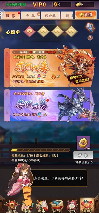 在主界面下方点击商城,即可进入角色招募界面。
