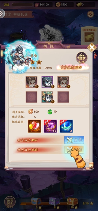玩家可以通过探险、完成剧情任务以及参与限时活动来收集喵将,并且需要运用策略进行布阵,以此激活技能连携效果,这一过程十分考验玩家的战术布局能力。
