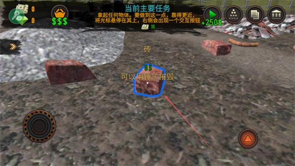 把光标移到砖块上,按照提示用锤子破坏这件物品,以此推动任务进程。