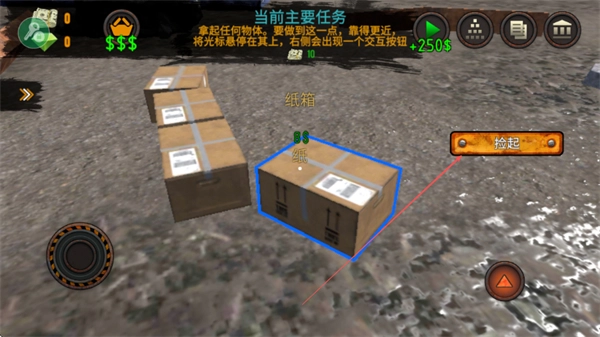 把光标移至纸箱处,点击“捡起”按钮来获取这个物品,即可完成该操作。