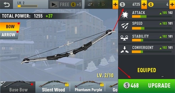 进入武器界面后,通过消耗资源对装备进行升级,可以提升攻击、速度等各项属性,从而增强在对战过程中的输出能力与生存能力。