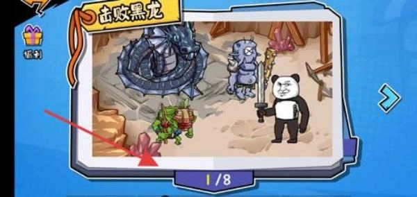 推进关卡:点击“击败黑龙”第1/8关,进入战斗场景。
