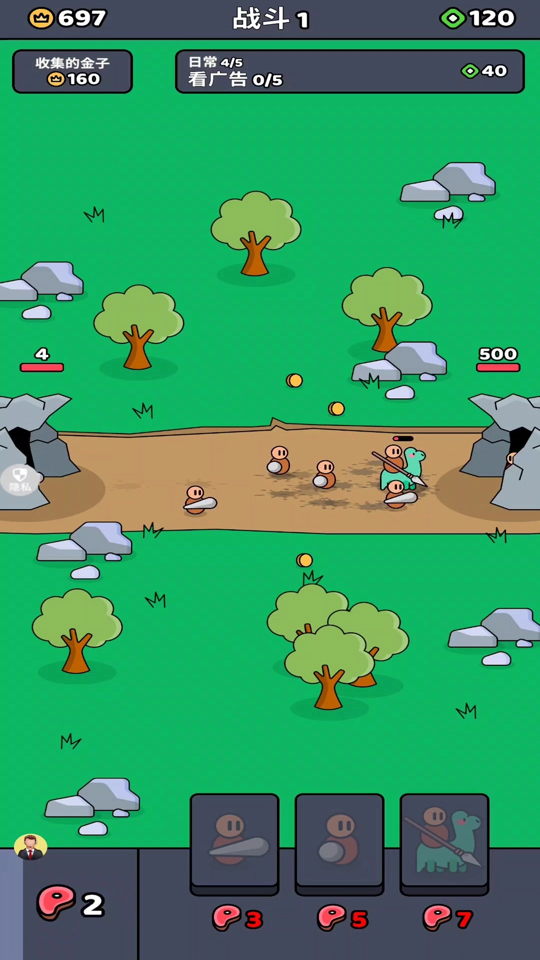 资源召唤机制:在战斗进程里,玩家可消耗“肉块”这一资源来即时召唤士兵;肉块会随时间自动累积,该机制着重考验玩家对于出兵时机和节奏的把控能力。