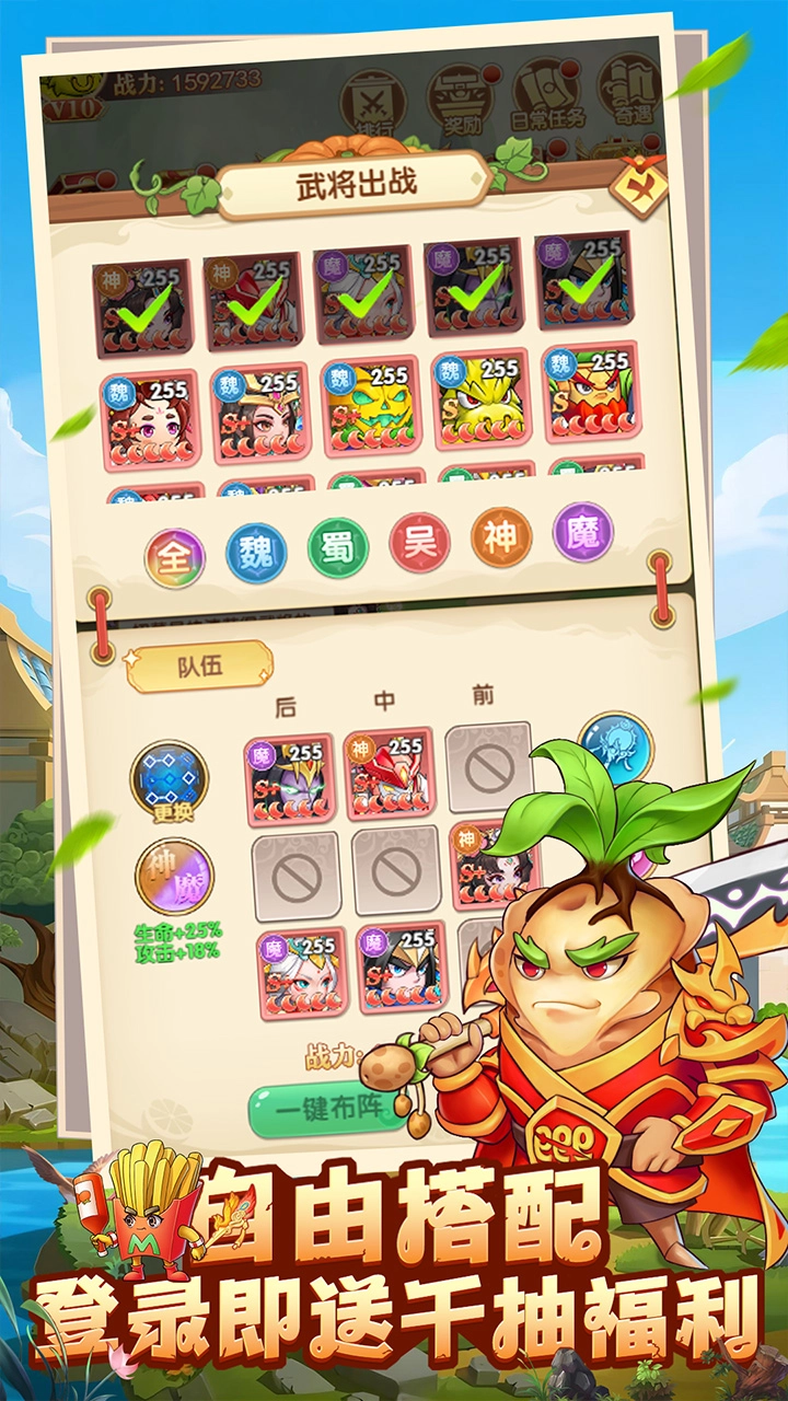 根据武将的特点和技能,组建最适合你的战斗队伍。