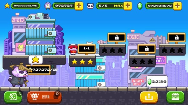 《超能熊猫侠》手游是一款像素风格的横版动作冒险游戏。在游戏中,玩家将操控四只熊猫侠,穿梭于城市、雪山等不同场景之间。通过跳跃、躲避陷阱来收集启明星,以此解锁新的关卡。游戏采用复古的8-bit画风,同时搭配了层次丰富的色彩设计,既有怀旧感,又能带来现代视觉体验。此外,它还支持全球玩家比拼成就和关卡设计,十分适合喜爱平台跳跃、创意挑战类游戏的玩家。