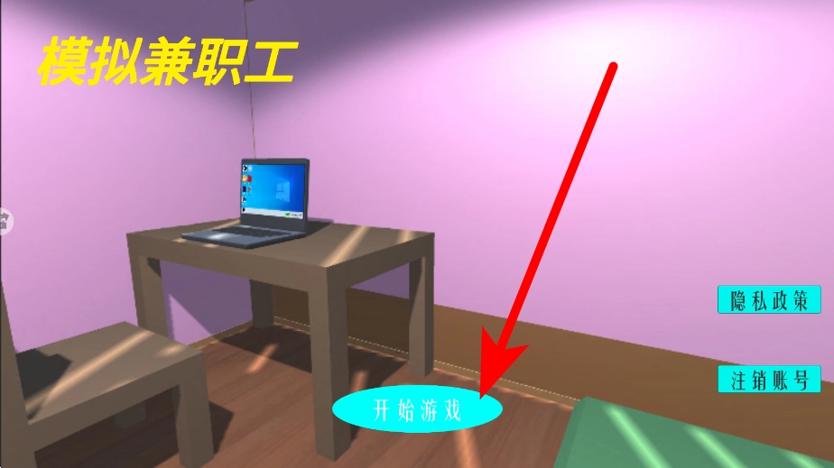 启动游戏时,只需点击开始游戏按钮,就能进入模拟兼职工的游戏世界,进而开展后续的移动、与电脑互动等各类兼职相关操作。