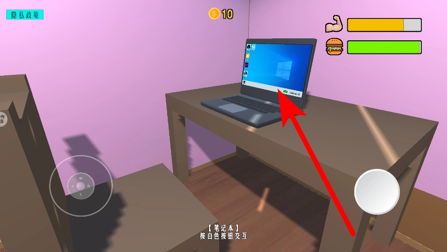当你靠近电脑并点击它时,就能和电脑建立互动,进入电脑界面,这为后续通过开启软件等方式进行兼职赚钱的操作打下基础。