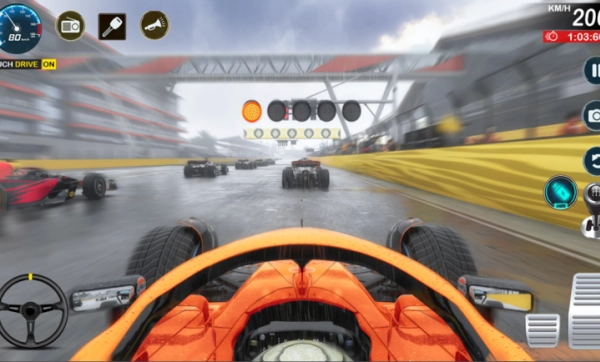 比赛过程中可能会突然遇到暴雨或沙尘暴天气,路面的湿滑程度会实时改变,这对操控策略产生很大影响。玩家需要依据天气情况来调整轮胎的选用以及驾驶方式。2、配备专业的车辆调校系统,能够单独对前/后轮胎气压、差速器锁止比例、下压力角度等参数进行调节,从而打造出符合自己习惯的驾驶手感。3、高度还原F1级别的竞赛体验,支持进站更换轮胎、遇到黄旗时减速、看到蓝旗时让车等专业竞赛机制。玩家必须严格遵守比赛规则,科学合理地规划进站的相关策略。