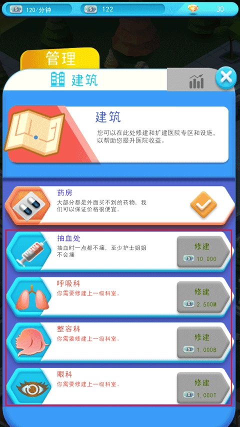 贪婪:提高单次诊疗的基础收入,再加上医生技能的加成,最终的收益会更加可观。