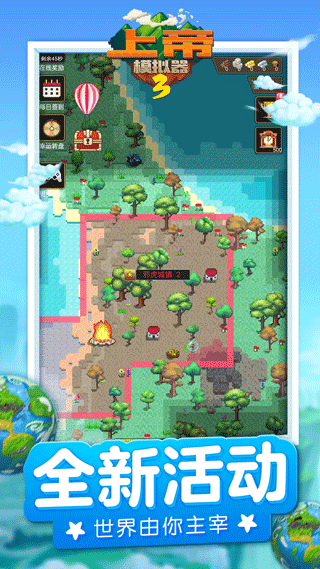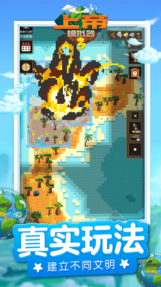 游戏的玩法非常简单,玩家将扮演一位上帝的角色,利用无上的神力来创造和建设自己的世界。你可以使用强大的元素力量及各种道具,构建出与中国极为相似的世界地图,比如火山爆发、海啸等自然现象,通过这些超自然的力量创造出美不胜收的地图景观。