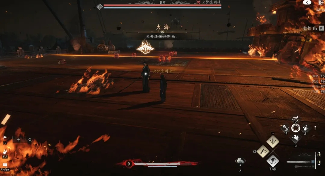 应对方法:将火海区域内的危险炸药桶搬开一定距离,消除危险标记,并快速离开火海覆盖范围。