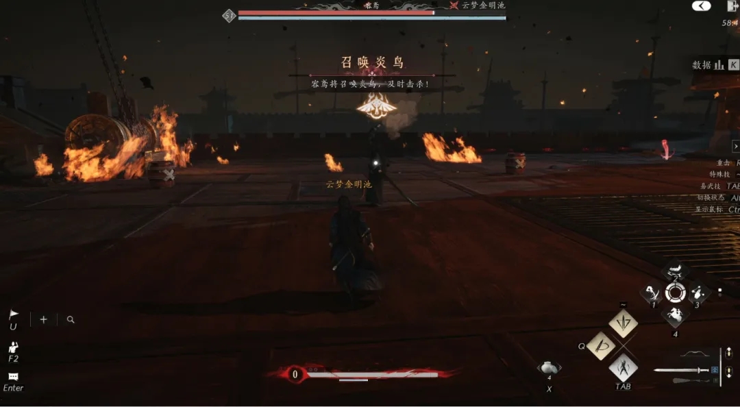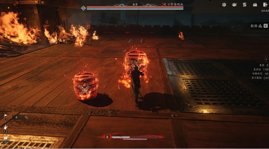 ③火海:首领读条火海预警后,木鸢会移动至场边释放覆盖大范围场地的火海,同时丢下数个炸药桶,火海会引爆炸药桶造成大量全场伤害。