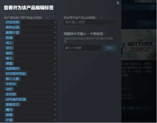 以《巫师3》为例,其中包含“裸露”标签。在未登录Steam账号的情况下,点进去后会提示需要先登录账号。而若登录的是国区账号,则会提示“您所在的国家/地区不允许看到此内容”。而“成人”标签则没有被禁,目前仍能正常访问。